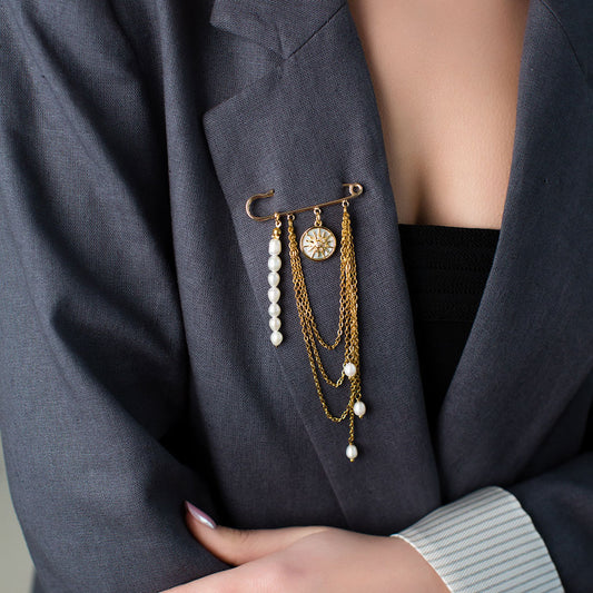 Broszka z zawieszkami w kolorze złota z naturalnymi perlami „Noelle”