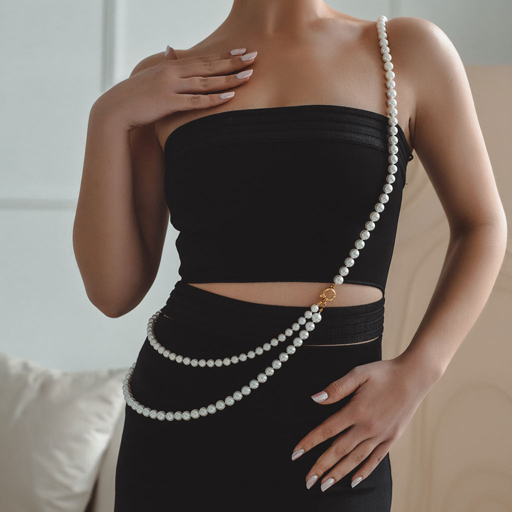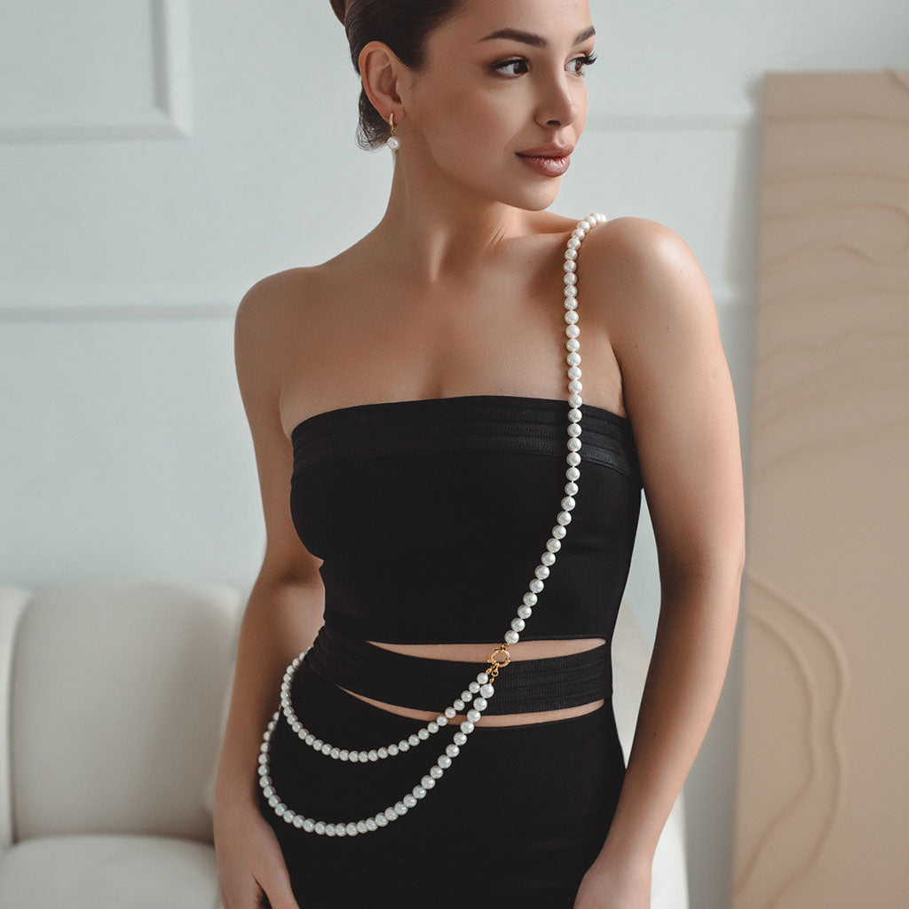⦁ Delikatna perłowa talia – druga, subtelna warstwa o średnicy 8 mm oplata talię, tworząc efektowny biżuteryjny akcent. Ten detal świetnie podkreśli figurę – również w sportowej stylizacji, dodając jej kobiecego wdzięku.